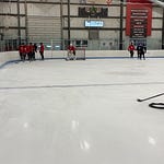 on the whistle all four lines go- 2 on 0 at each end of the ice where you have to keep your head up in the neutral zone to evade a collision with the opposite end